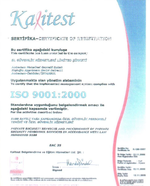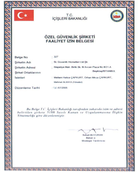 SL Özel Güvenlik Şirketi Belgelerimiz.
